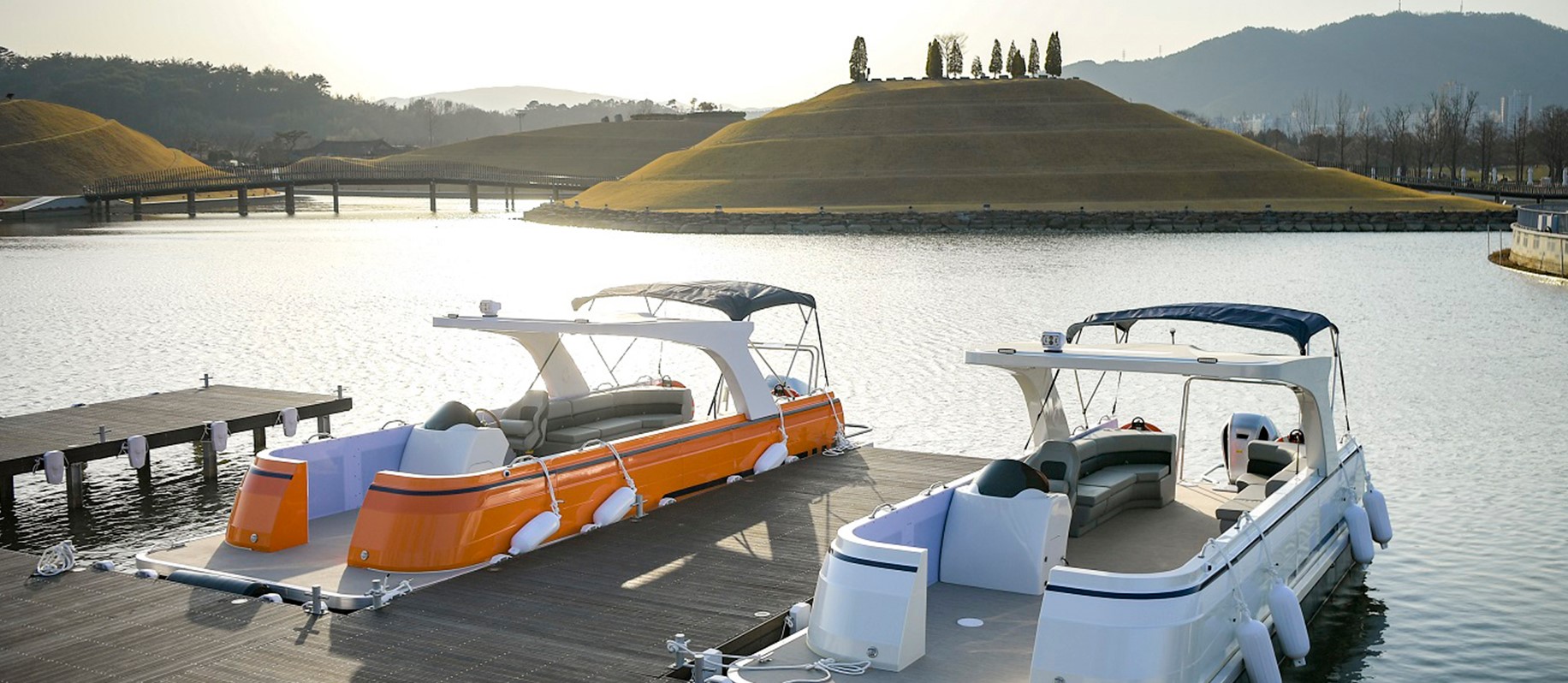 순천만 국제 정원 박람회 행사장으로 들어가기 위해 로맨틱하면서도 멋진 방법인 배를 타보세요!