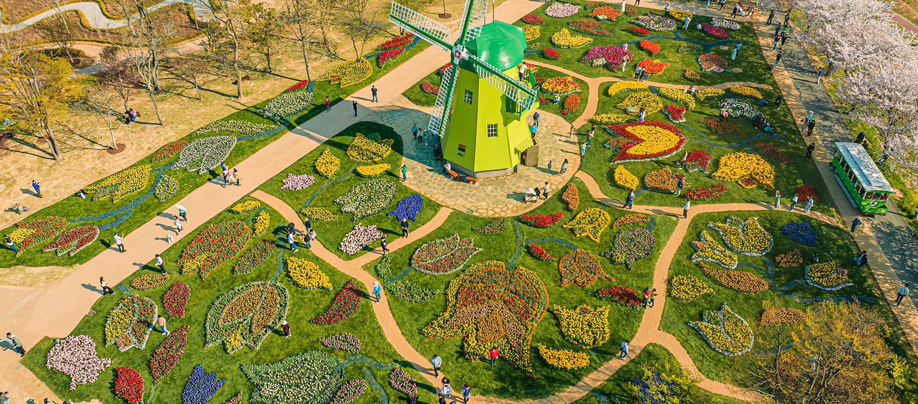 시크릿 가든에서 나와서 박람회 장소를 걸으며 가벼운 마음으로 전 세계를 상징하는 정원들을 감상할 수 있습니다.