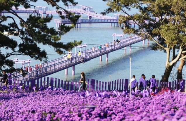 전남 신안 퍼플섬은 보라색으로 장식된 독특한 섬으로 유명합니다.