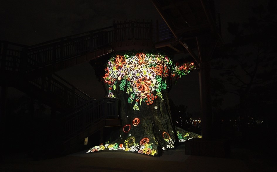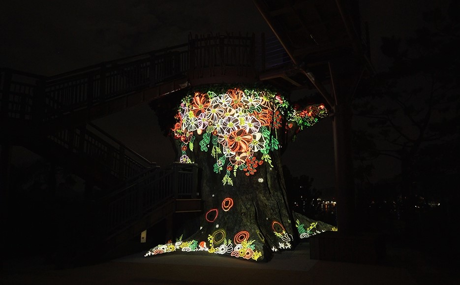 디피랑은 통영의 한 공원이 이야기를 들려주며 빛의 정원으로 꾸며지는 곳이다.