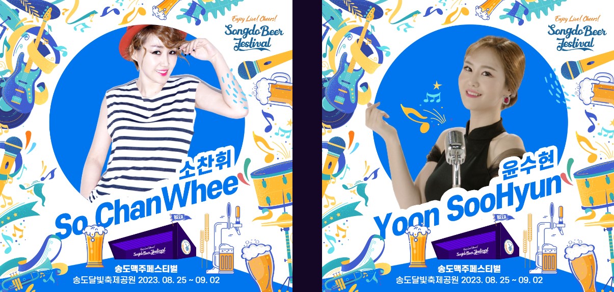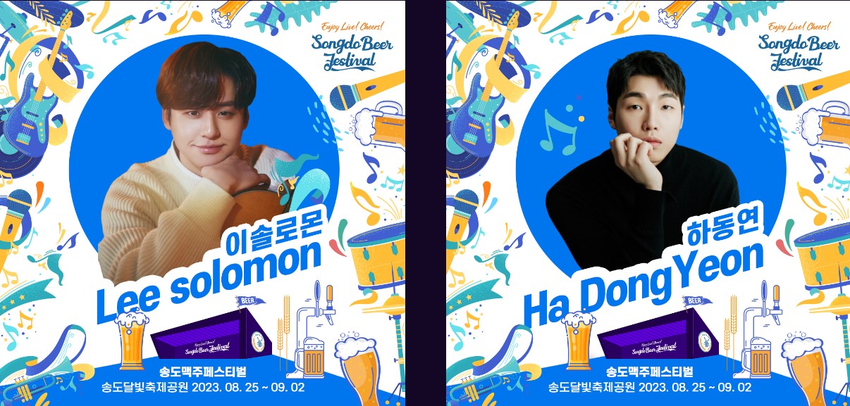 2023 송도 맥주 축제 가수 출연진김종서, 홍경민, 소찬휘, 하동연 등 시원한 가창력의 보컬 라인업과 박현빈, 윤수현, 노지훈, 김동현, 이솔로몬 등 화끈한 트로트 무대까지 화려한 라인업을 자랑한다.